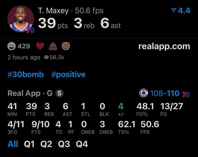 马克西全场27中13,三分11中4